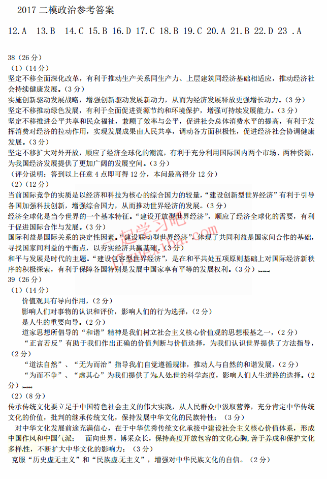 2017年东北三省四市高考第二次模拟考试文综试题及答案(17)