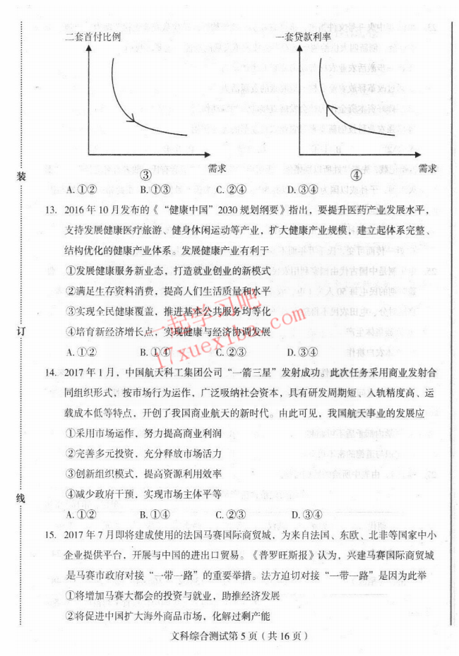 2017年东北三省四市高考第二次模拟考试文综试题及答案(5)