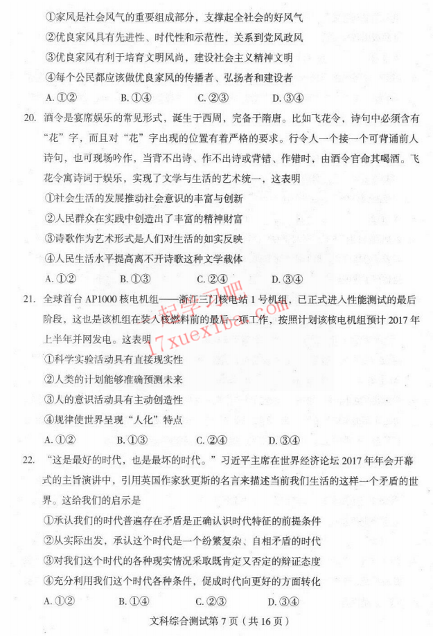 2017年东北三省四市高考第二次模拟考试文综试题及答案(7)