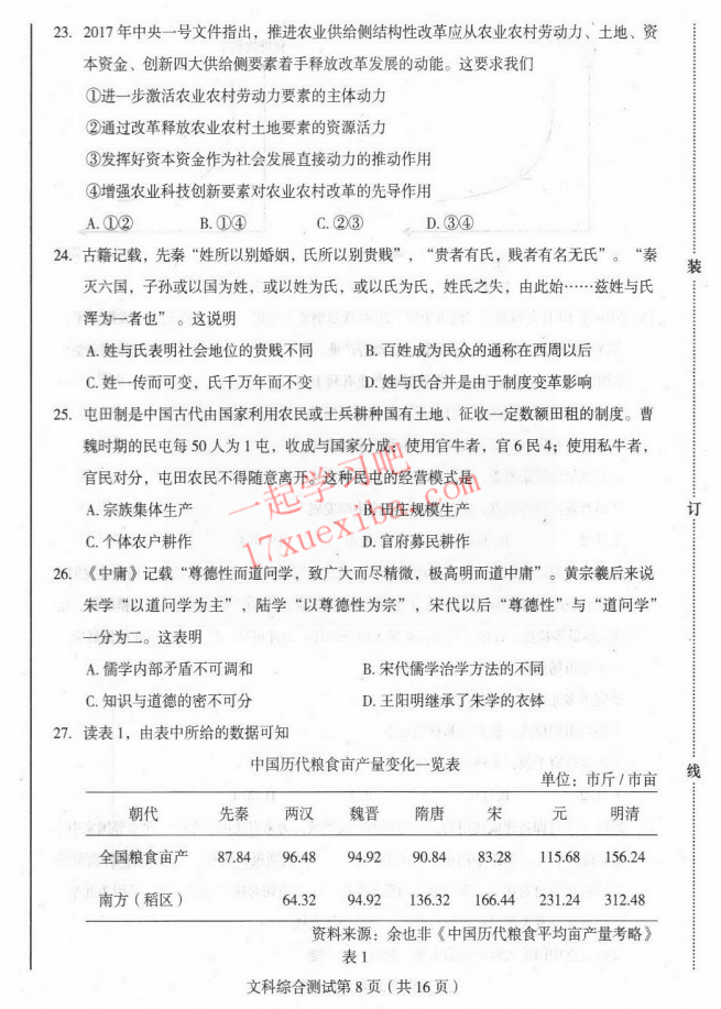 2017年东北三省四市高考第二次模拟考试文综试题及答案(8)