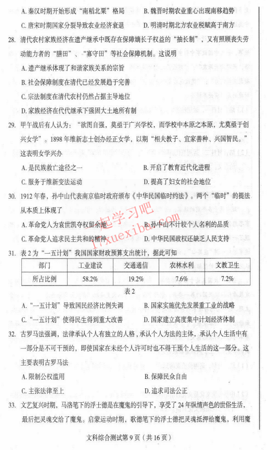 2017年东北三省四市高考第二次模拟考试文综试题及答案(9)
