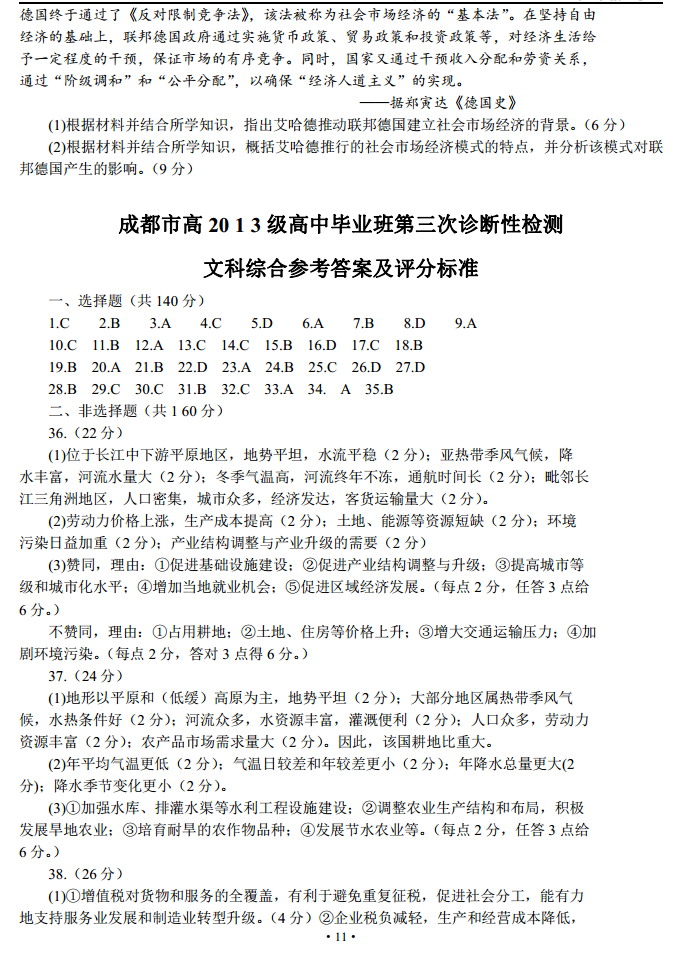 四川省成都2016届高三第三次诊断性考试文科综合试卷及答案(11)