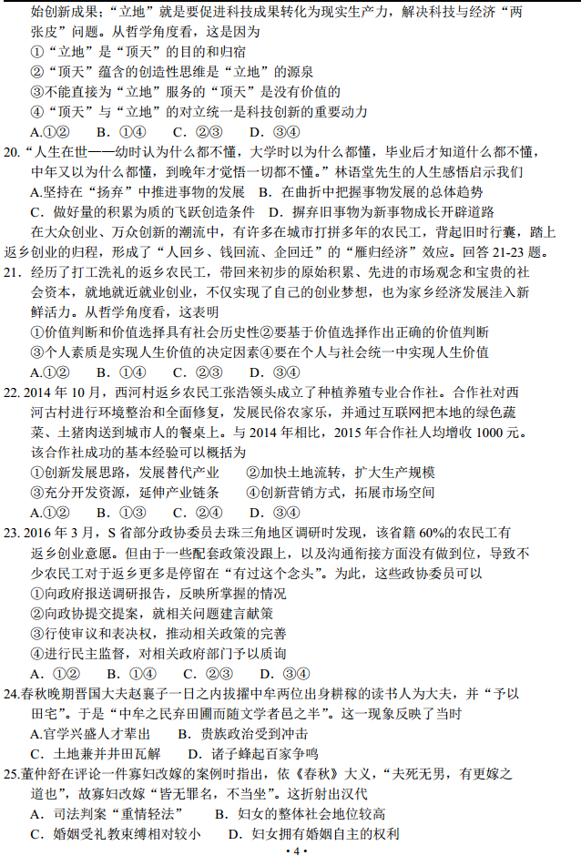 四川省成都2016届高三第三次诊断性考试文科综合试卷及答案(4)
