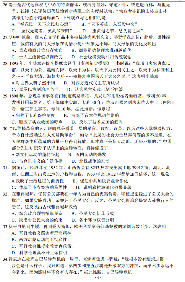 四川省成都2016届高三第三次诊断性考试文科综合试卷及答案(5)