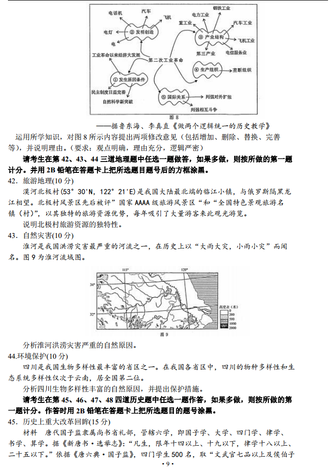 四川省成都2016届高三第三次诊断性考试文科综合试卷及答案(9)
