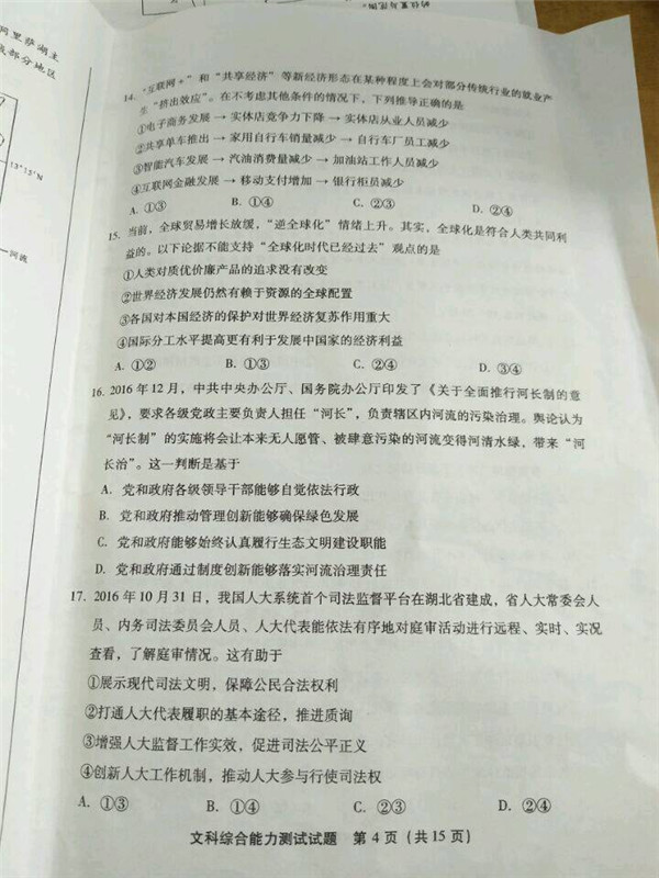 2017年福建省高中毕业班质量检查文综试题及答案(4)
