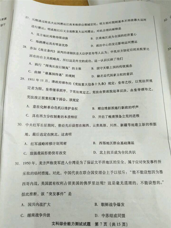 2017年福建省高中毕业班质量检查文综试题及答案(7)