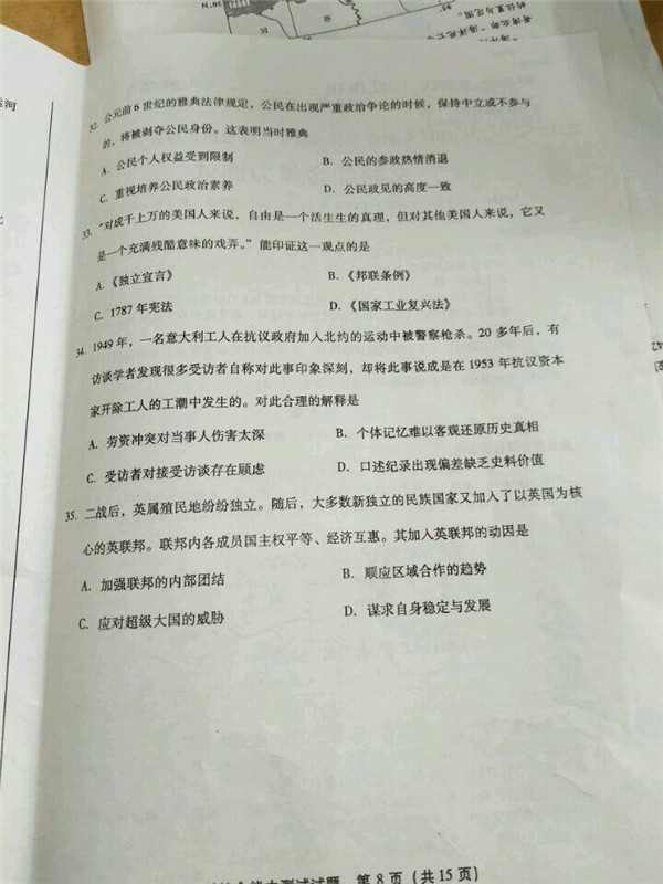2017年福建省高中毕业班质量检查文综试题及答案(8)