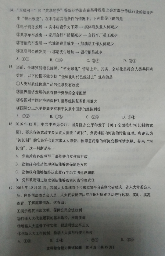 2017年福建普通高中毕业班质量检查文科综合试题及答案(4)