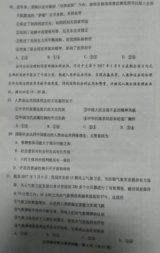 2017年福建普通高中毕业班质量检查文科综合试题及答案(5)