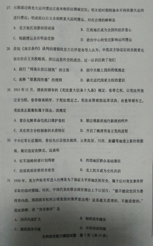 2017年福建普通高中毕业班质量检查文科综合试题及答案(7)