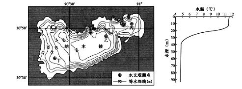 纳木错位于藏北高原,每年12月至次年4月湖面封冻,冰面厚达2m,7月,某科考队前往纳木错考察湖泊的水温的垂直变化。右下图适宜科考队员绘制的某观测点7月水温垂直变化,读图完成下列各题。