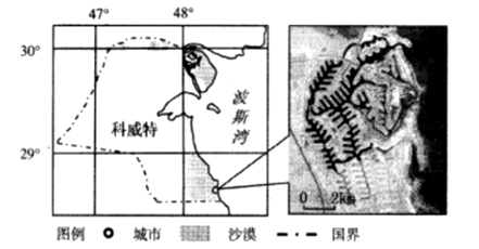 2016年英国《每日邮报》报道,英国工程师利用挡潮闸将海水引入内陆,帮助科威特在沙漠的盐沼上建造一座新的城市——海城,同时科学家也帮助拍于适宜在该地沿岸地区种植的红树种子。下图示意海城位置和遥感影像。据图完成下列各题。