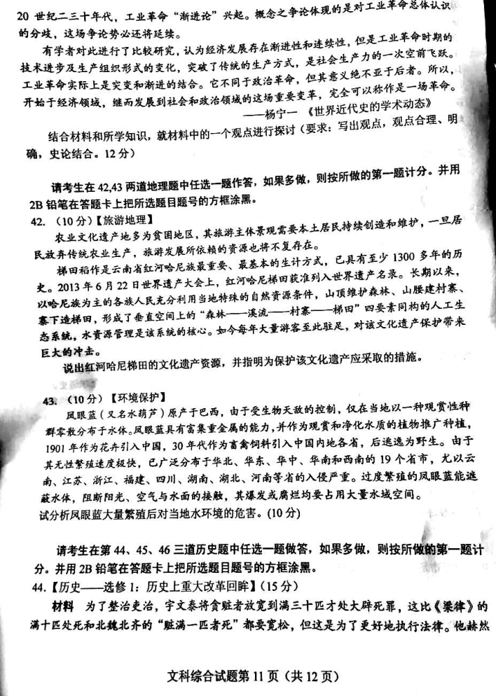 2017绵阳三诊文综试题及答案(10)