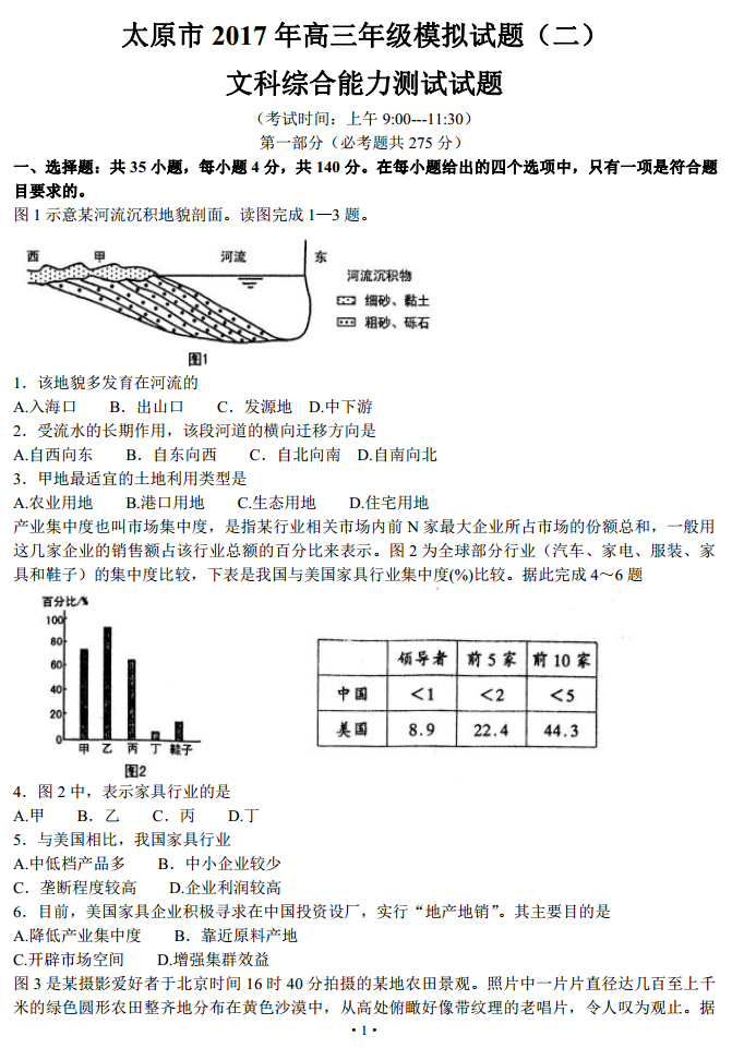 2017太原二模文综试题及答案