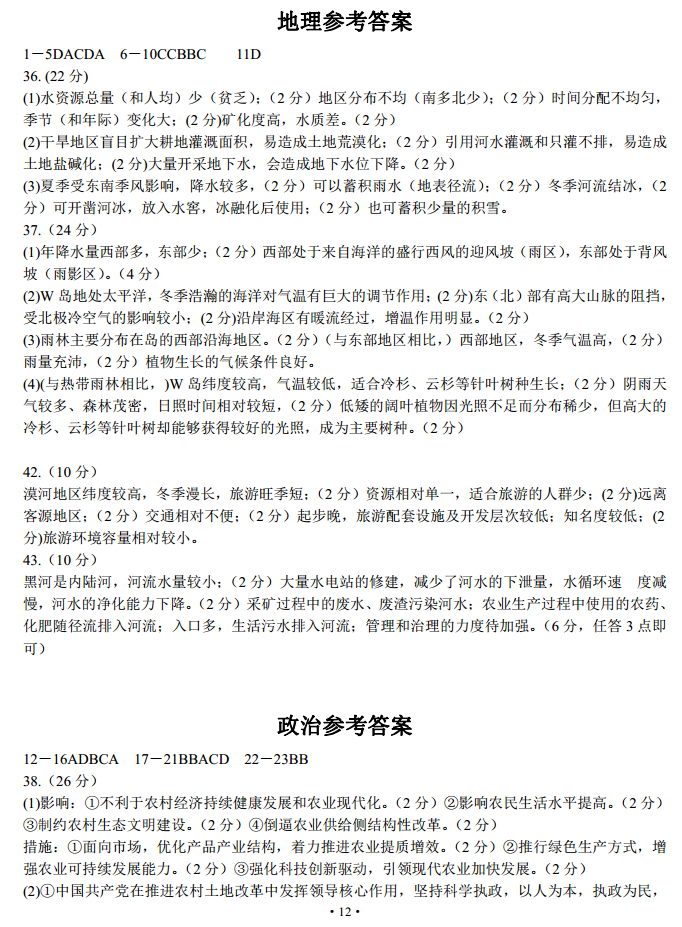 2017太原二模文综试题及答案(12)