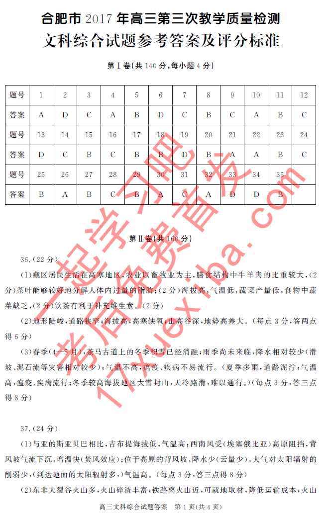 2017年合肥三模文综试题及答案