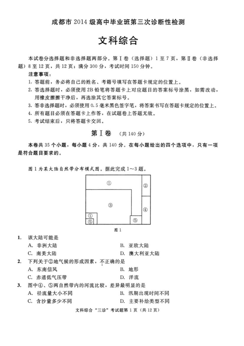 2017年成都三诊文综试题及答案