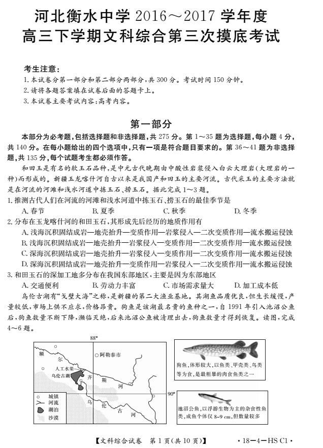 2017衡水中学高三三模文综试题及答案