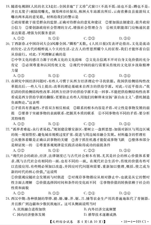 2017衡水中学高三三模文综试题及答案(4)