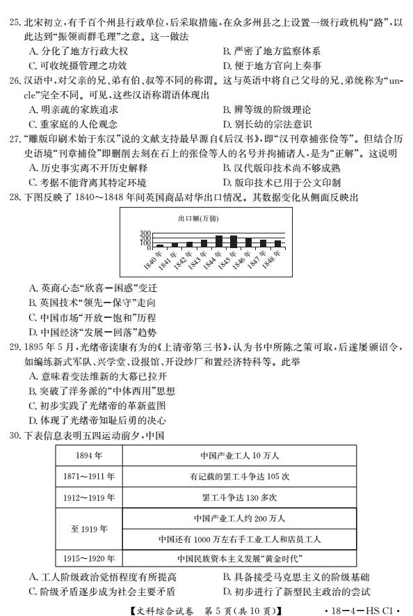 2017衡水中学高三三模文综试题及答案(5)