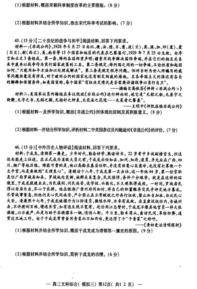 2017南昌高三三模文综试题及答案(12)