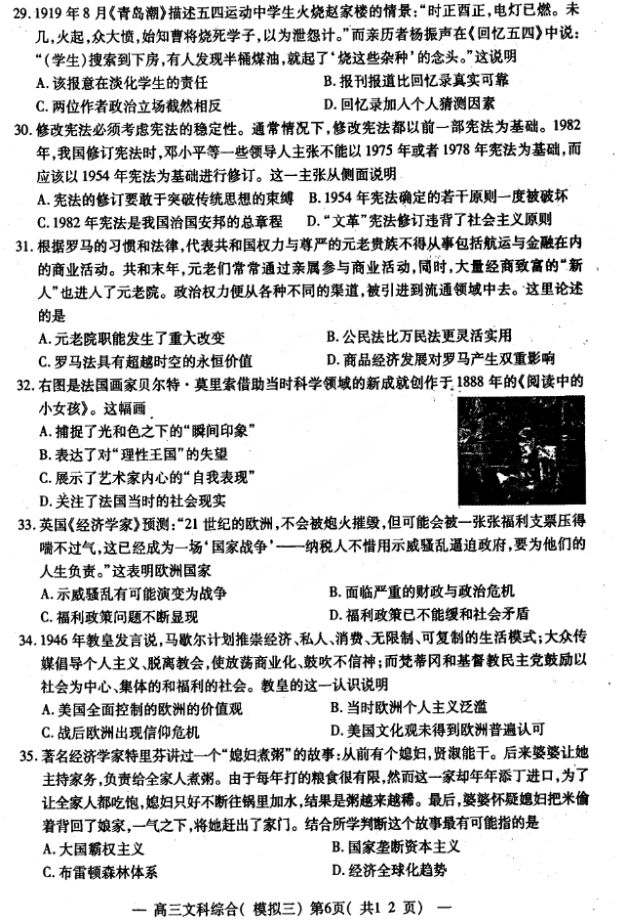 2017南昌高三三模文综试题及答案(6)