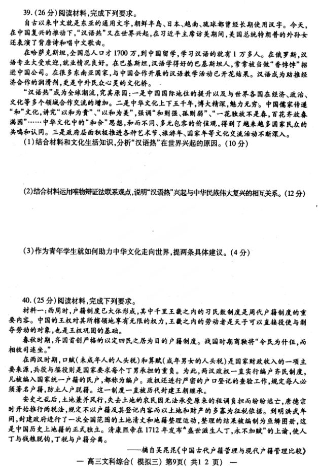 2017南昌高三三模文综试题及答案(9)