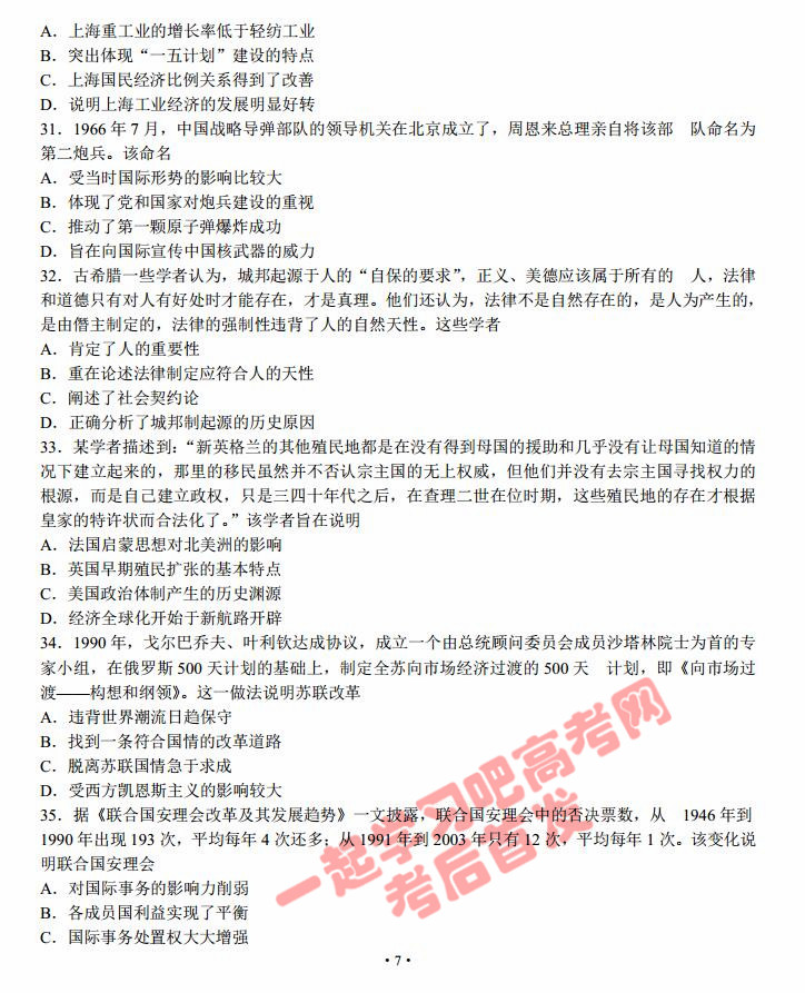 2016河北衡水中学金卷二高考模拟押题卷文综试题及答案(7)