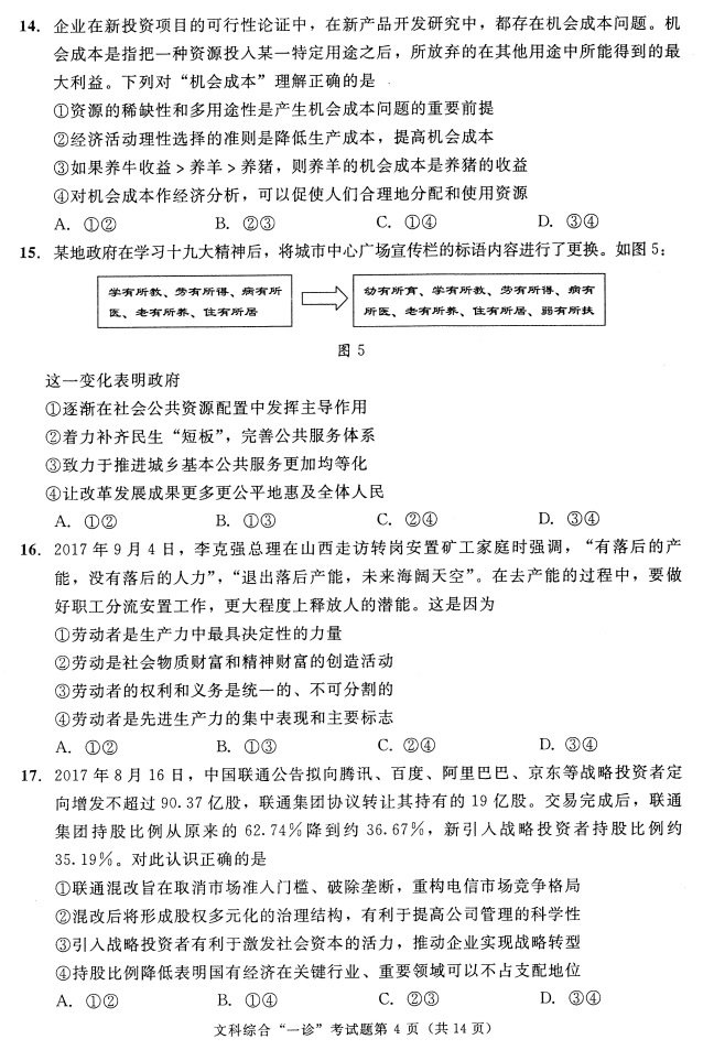 2018成都一诊文科综合试题答案(4)