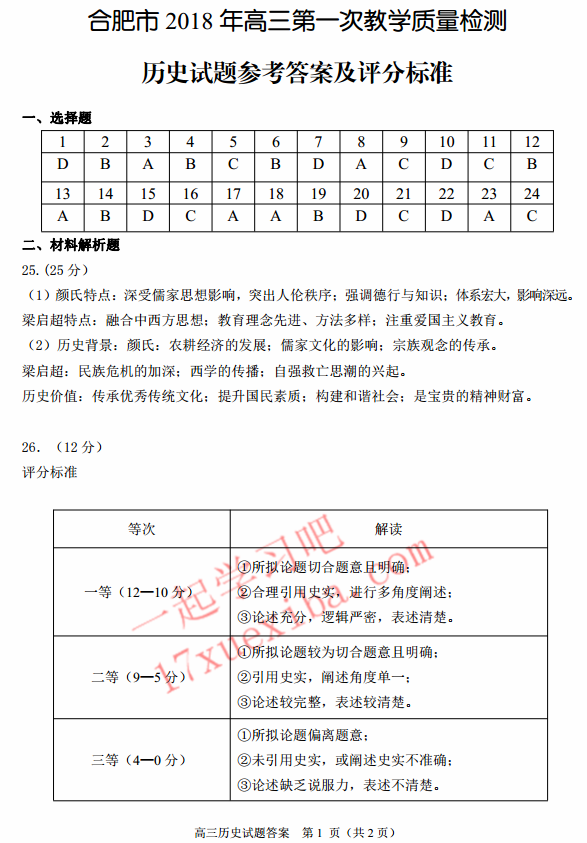 2018年合肥一模文综试题及答案(5)