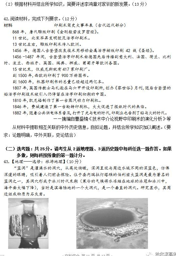 2018年哈三中一模文综试题及答案(11)