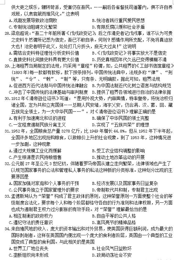 2018年哈三中一模文综试题及答案(6)