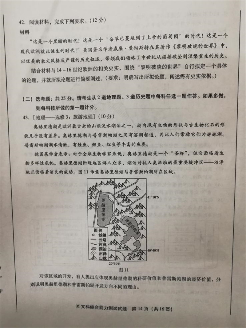 2018年福建省高三质量检查文综试题答案(14)