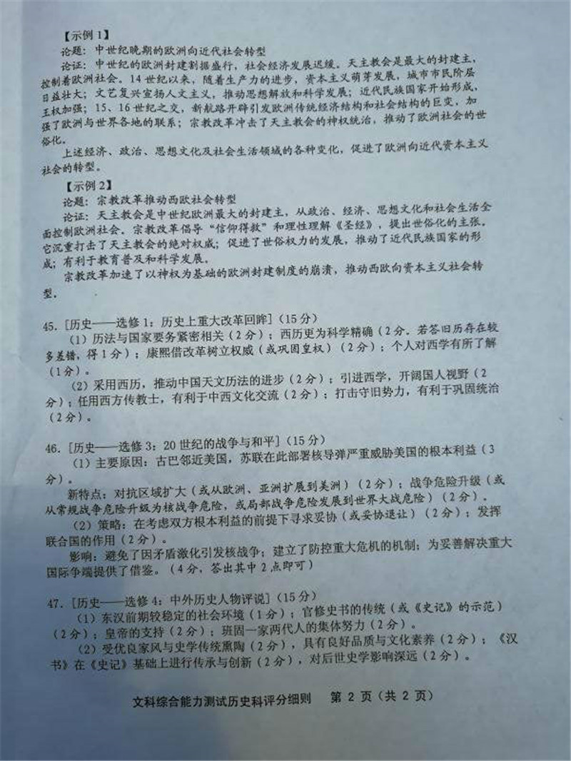 2018年福建省高三质量检查文综试题答案(20)