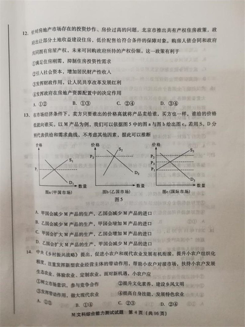 2018年福建省高三质量检查文综试题答案(4)