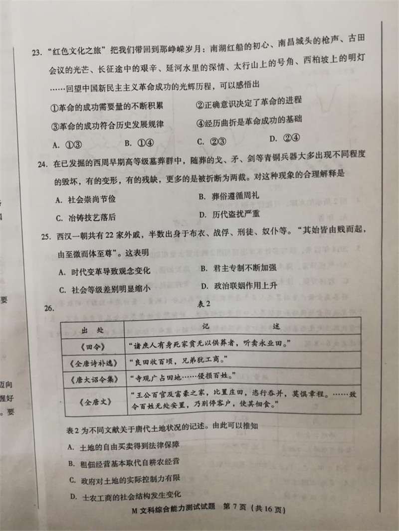 2018年福建省高三质量检查文综试题答案(7)