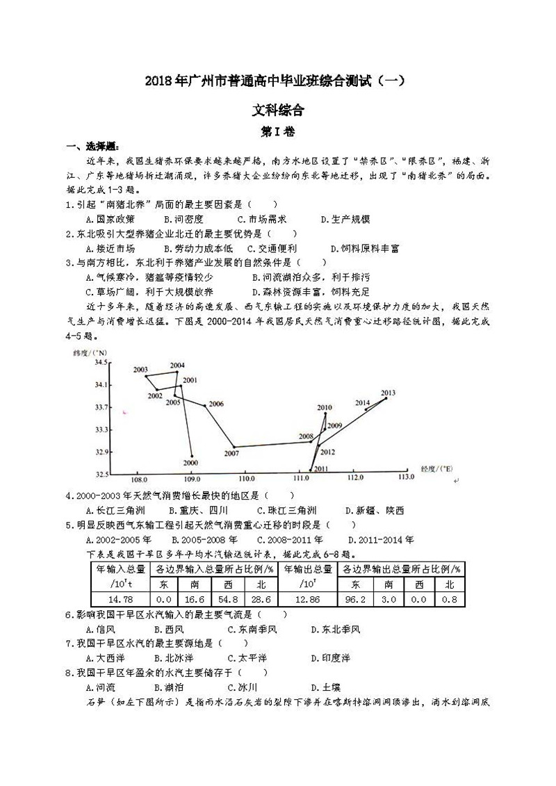 2018年广州一模文综试题及答案