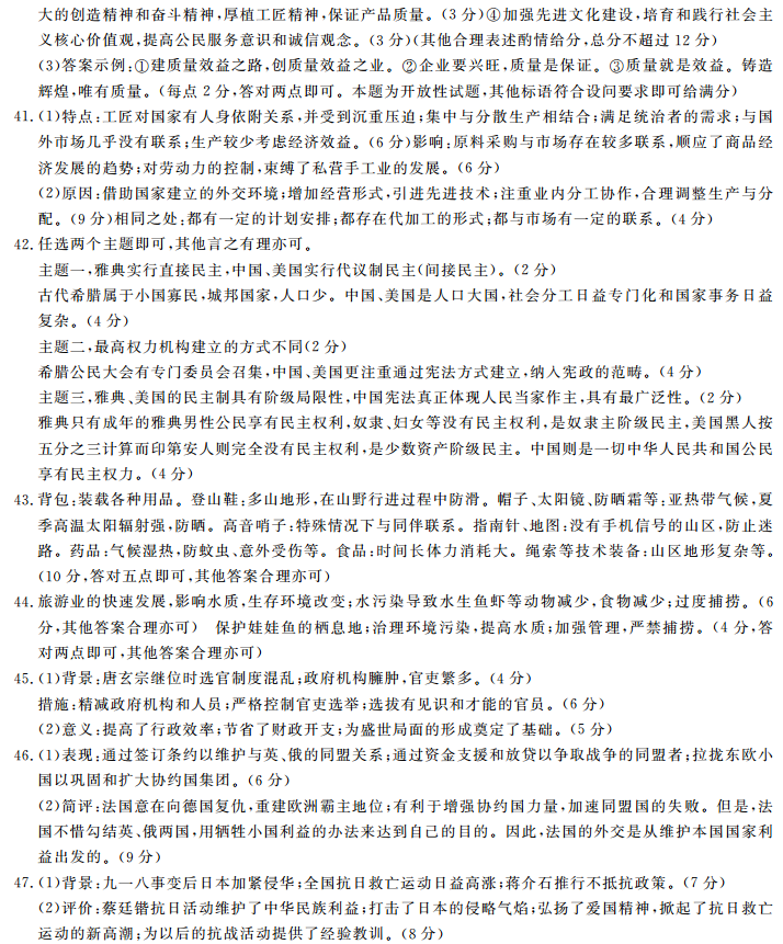 皖南八校2019届高三第二次联考文综试题答案(4)