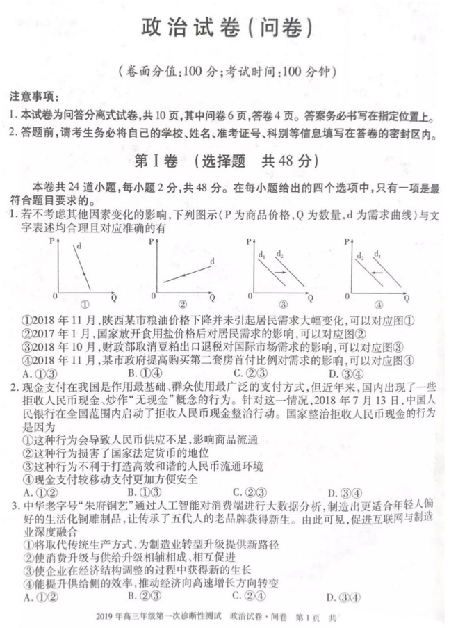 2019年乌鲁木齐一模文综试题答案