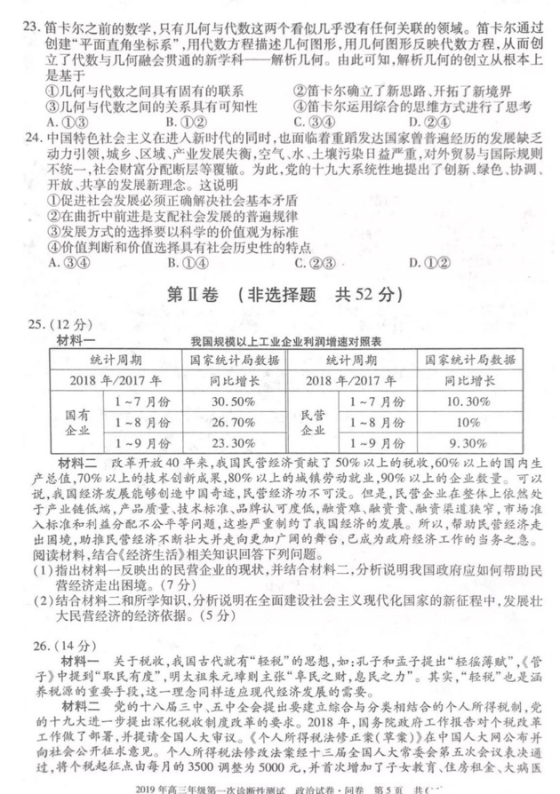 2019年乌鲁木齐一模文综试题答案(5)