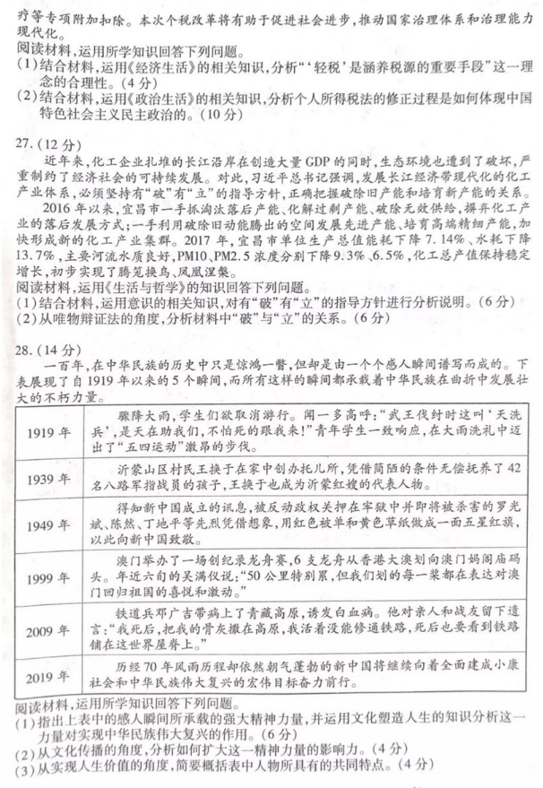 2019年乌鲁木齐一模文综试题答案(6)