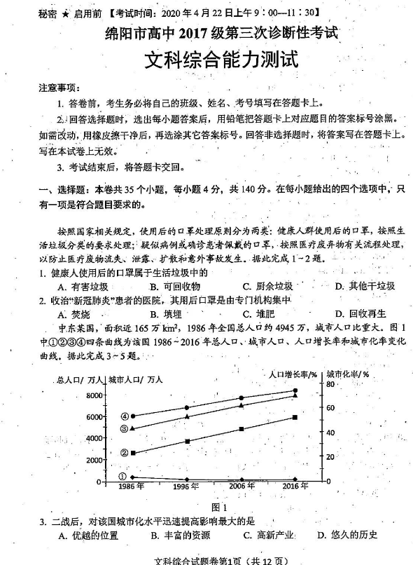 绵阳三诊文综试题及答案