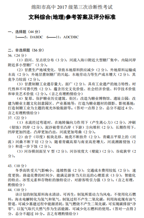 绵阳三诊文综试题及答案(16)