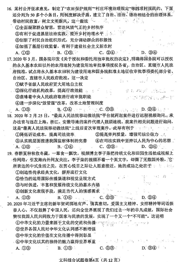 绵阳三诊文综试题及答案(4)