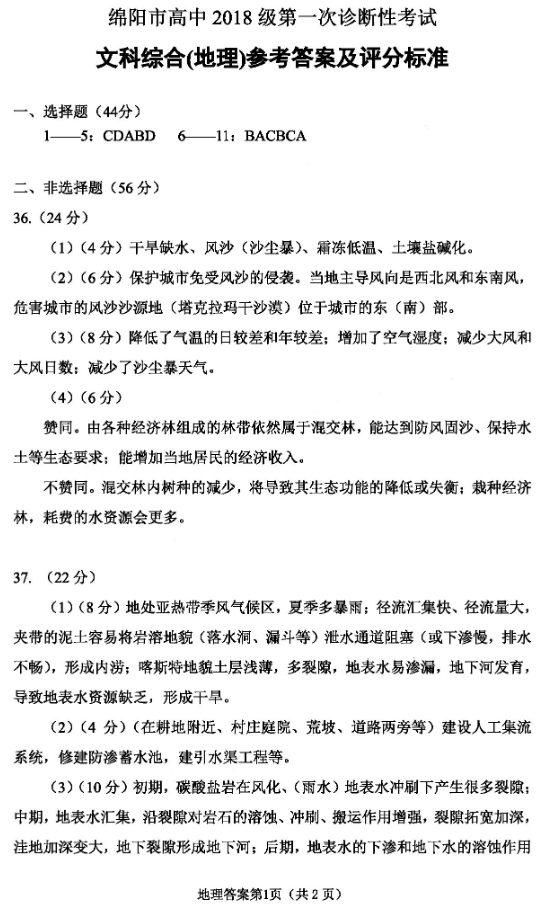 阳光学习网 来源: 绵阳二诊文综 2021-01-17 本文受益:人 大 中 小