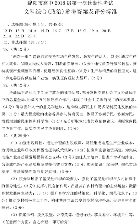 2021年绵阳二诊文综试题及答案(16)