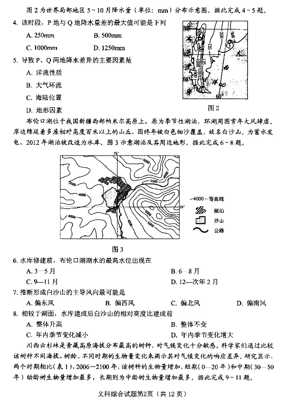 2021年绵阳二诊文综试题及答案(2)