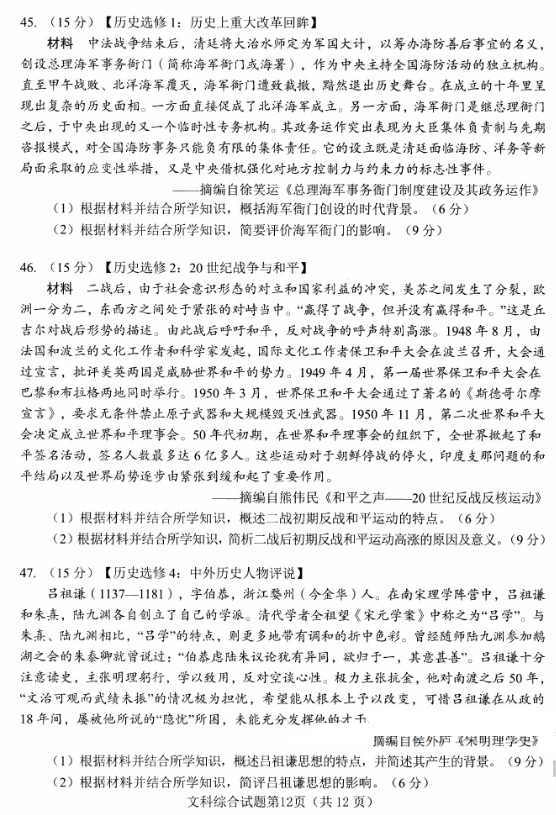 2021年绵阳三诊文综试题及答案(12)