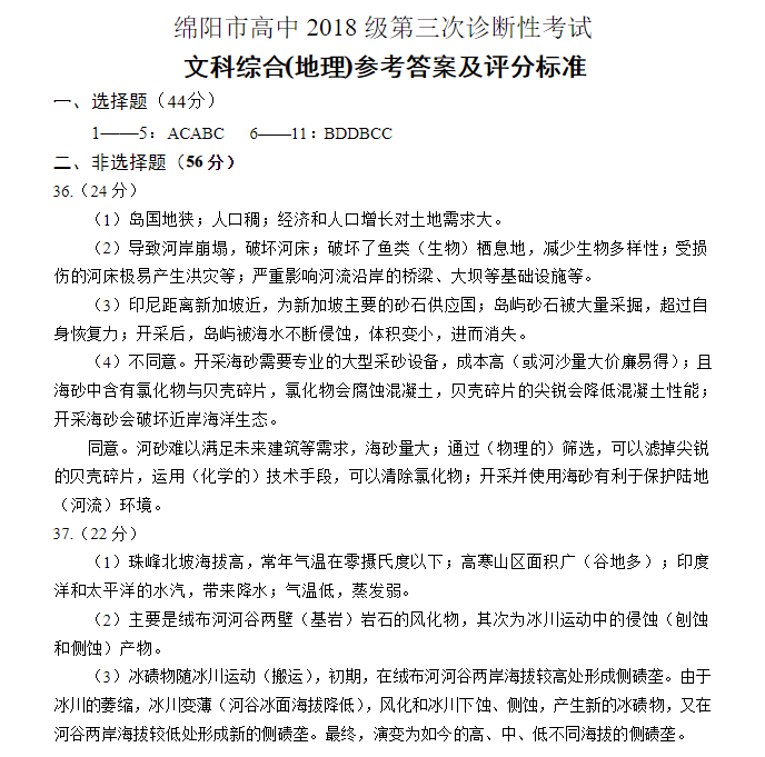 阳光学习网 来源: 绵阳三诊文综 2021-04-22 本文受益:人 大 中 小